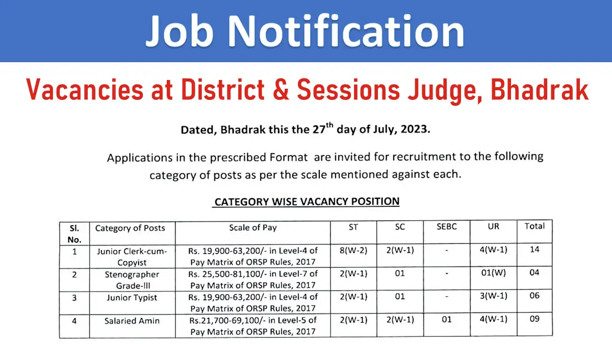 Vacancies at District and Sessions Judge, BhadrakVacancies at District and Sessions Judge, Bhadrak Share On:FacebookTelegramWhatsApp Vacancies at District and Sessions Judge, Bhadrak